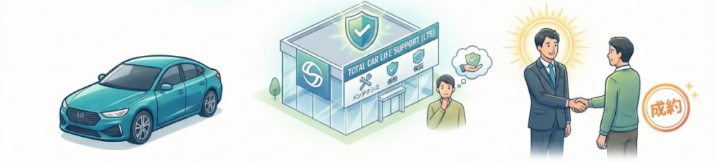 Where(どこで買うか):自社のトータルカーライフサポートを提示し、「ここで買うのが最も安心で合理的だ」という理由を伝えます。
